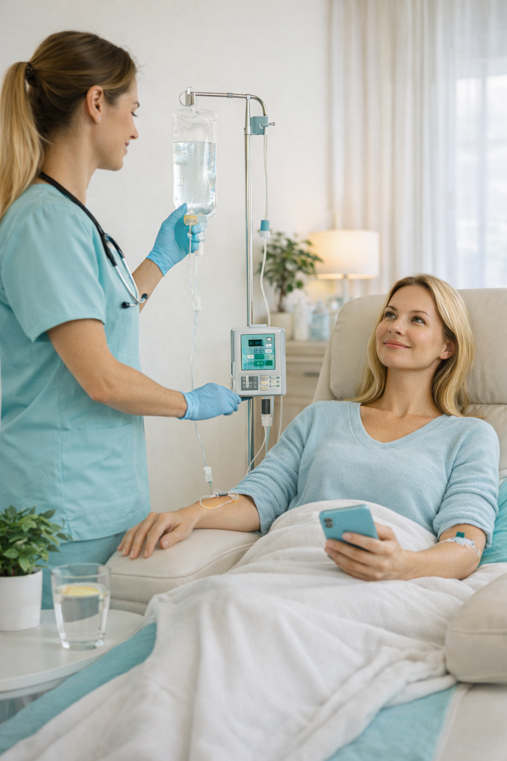 Personalized IV infusion services designed to support hydration, energy, immunity, recovery, and overall wellness—delivered in a safe, comfortable, and medically supervised clinical setting.