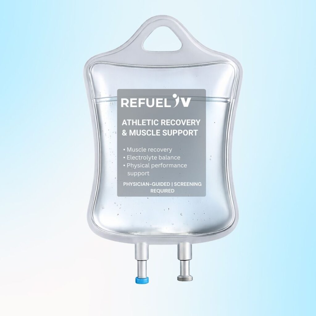 The Athletic Recovery & Muscle Support drip is a physician-screened IV wellness therapy designed to support muscle recovery, reduce post-exertion fatigue, and promote physical resilience. This infusion delivers targeted recovery-supporting nutrients directly into the bloodstream, helping the body recover efficiently after intense physical activity.